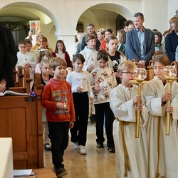 Zelebriert wurde die hl. Messe von Vikar Gerhard Hartmann und Diakon Michi Zepf, der die vielen Kinder zusammen mit den Minis zur Evangeliumsprozession und zum Vater-unser-Kreis einlud – spannende Momente für unsere Kleinen!